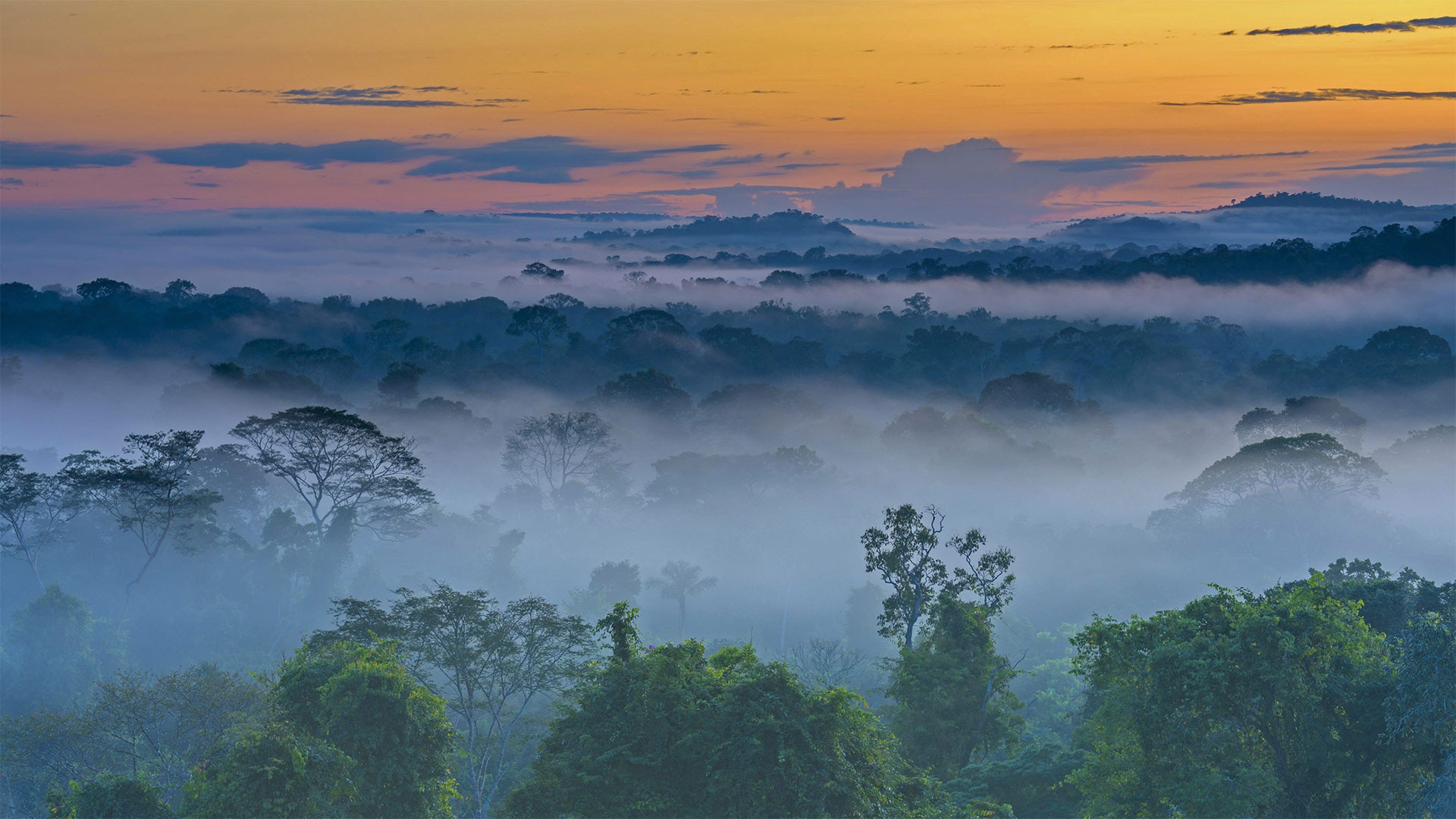 Amazon rainforest with morning fog near Alta Floresta, Mato Grosso, 巴西 (© Pulsar Imagens/Alamy)