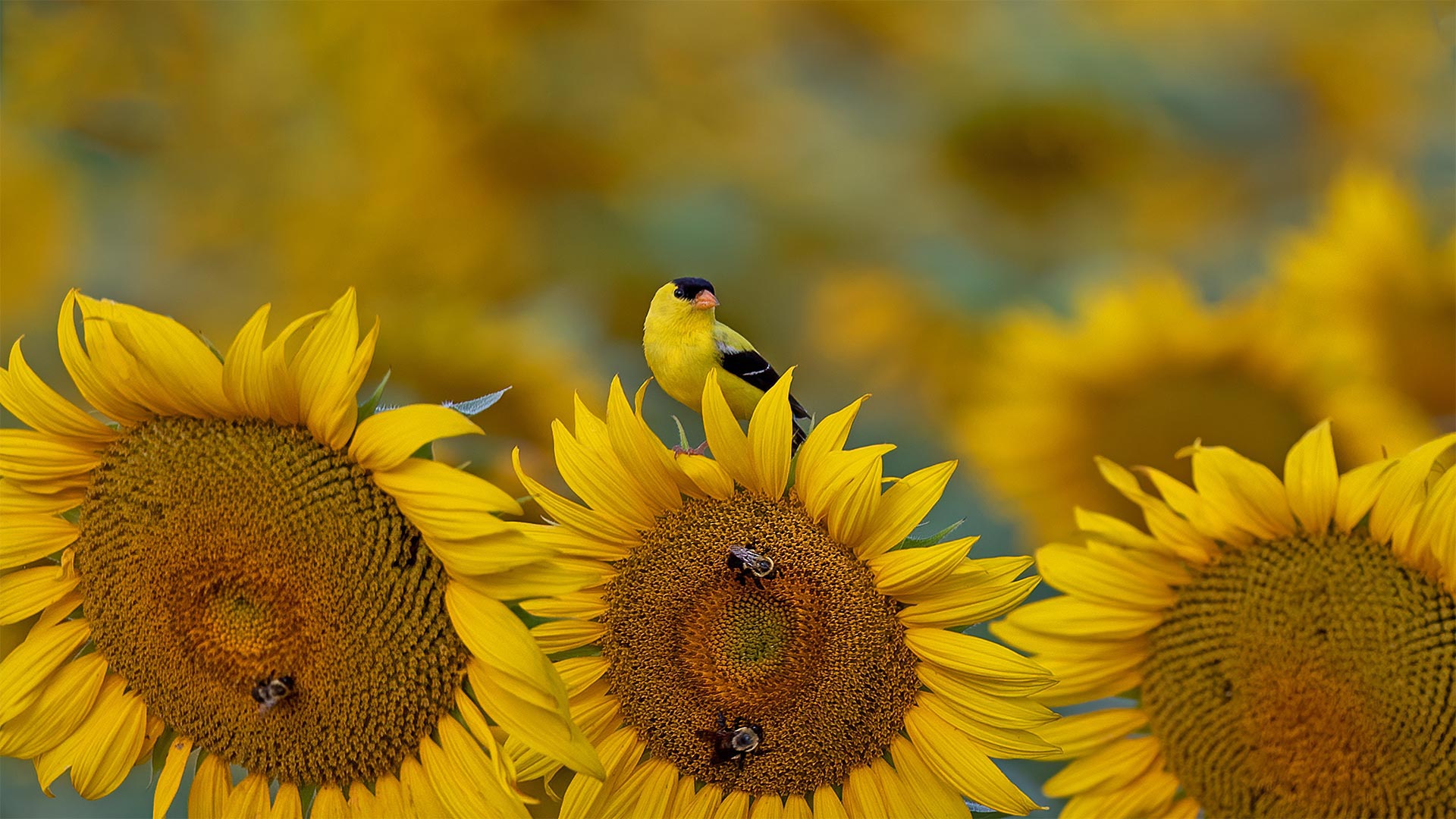 Goldfinch on a sunflower in McConnells, 南卡罗来纳州 (© Teresa Kopec/盖蒂图片社)